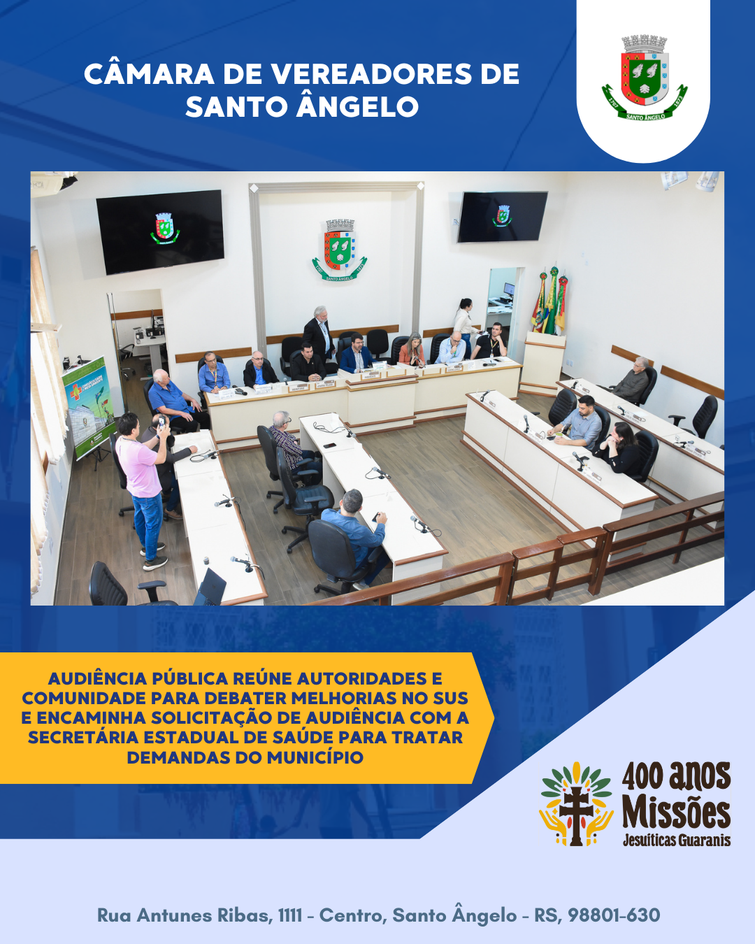 🩺 Audiência pública reforça o compromisso do Legislativo com soluções para fortalecer o SUS em Santo Ângelo