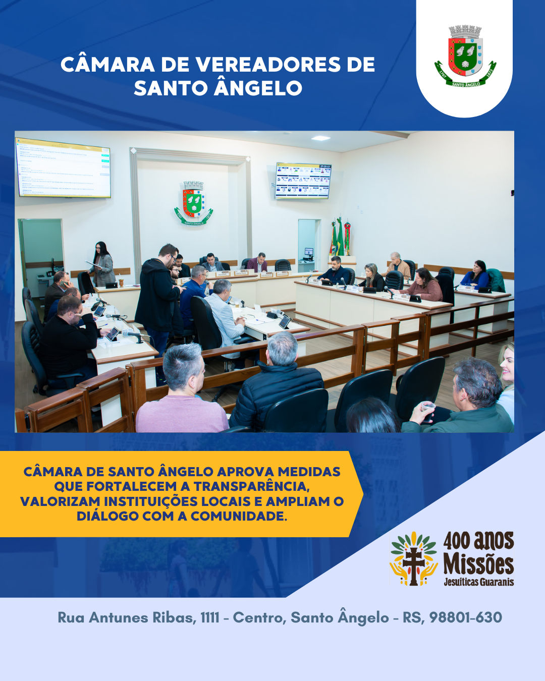 Câmara de Santo Ângelo aprova ações que reforçam a transparência e aproximam a comunidade