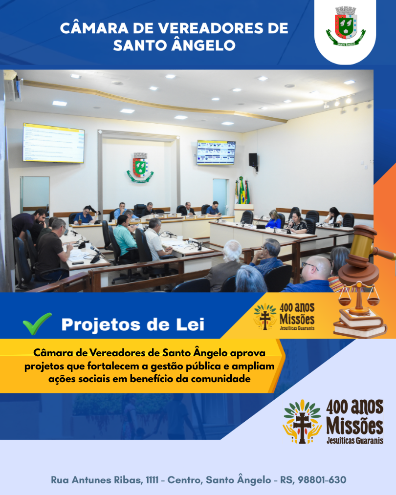 Câmara de Santo Ângelo aprova projetos de gestão e ação social