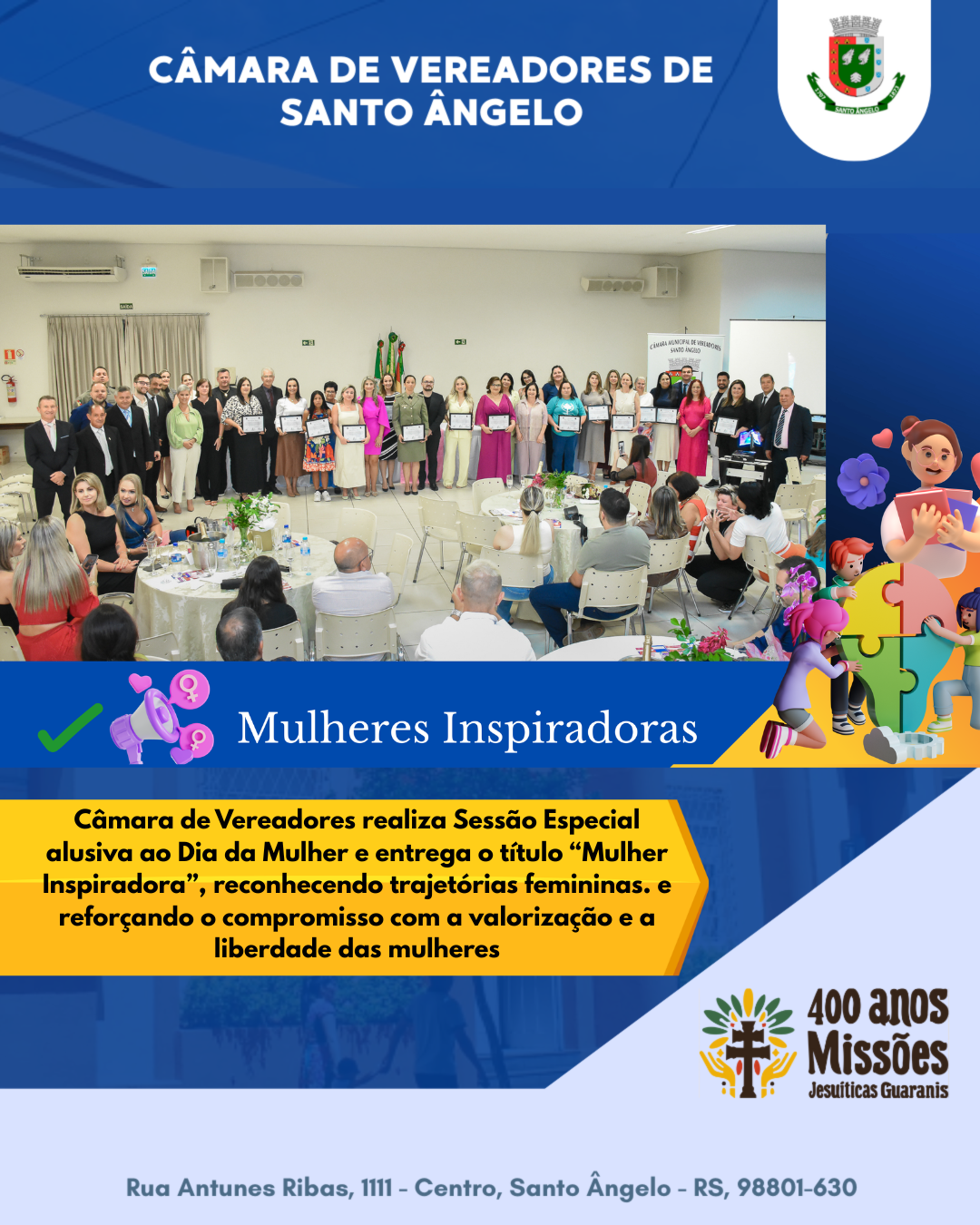 Câmara de Santo Ângelo celebra mulheres inspiradoras e suas trajetórias marcantes
