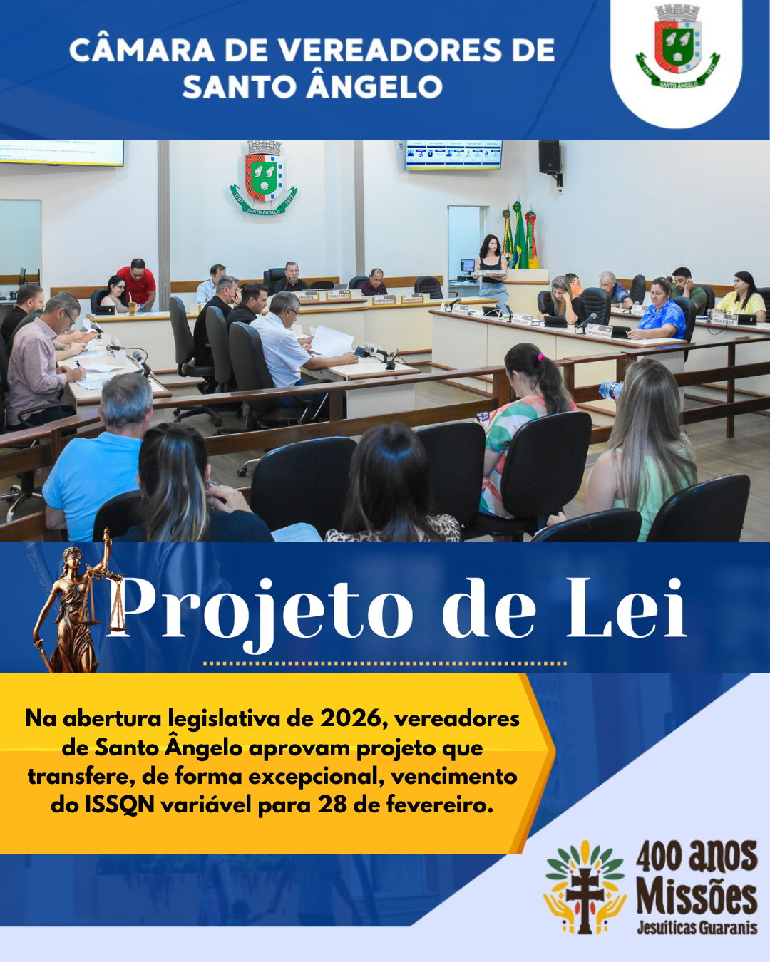 Câmara de Santo Ângelo inicia 2026 aprovando prorrogação excepcional do prazo do ISSQN