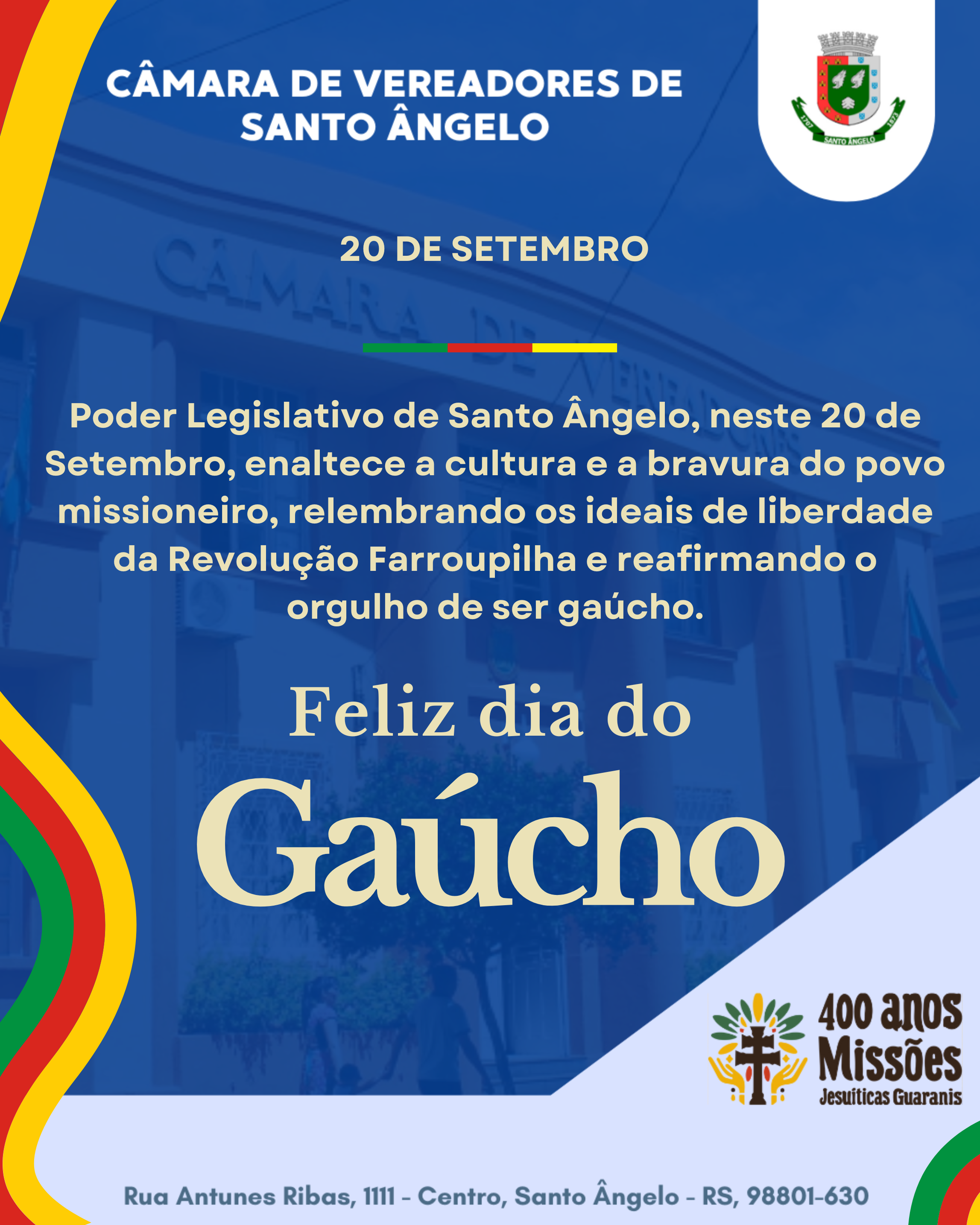 Câmara de Vereadores de Santo Ângelo parabeniza os gaúchos pelo orgulho e legado farroupilha