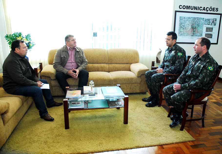 O Presidente da Câmara de Vereadores de Santo Ângelo, Pedro Waszkiewicz - Pedrão (PDT) e o vereador Osvaldir Ribeiro de Souza – Vando (PMDB), estiveram na manhã desta quinta-feira, dia 02, reunidos com o comandante do 1º BCom, Coronel Jorge Luís Ferreira e com o Capitão e Instrutor Chefe do NPOR - Núcleo de Preparação de Oficiais da Reserva –, Herber dos Reis.