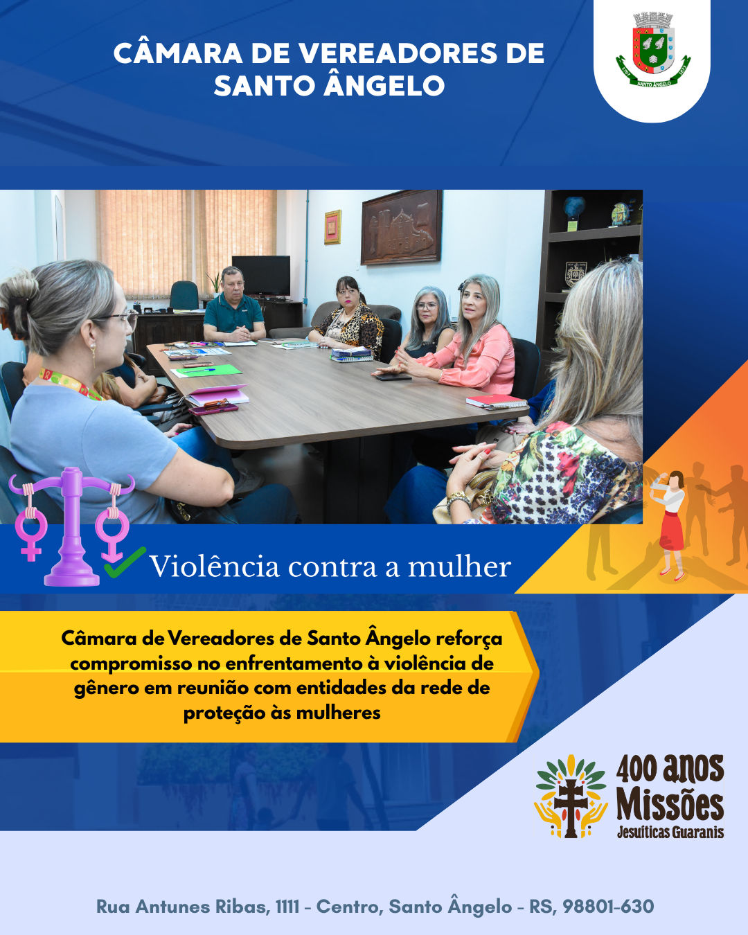A reunião reafirmou o compromisso da Câmara de Santo Ângelo em somar esforços na luta contra a violência de gênero, apoiando iniciativas que promovam segurança, dignidade e respeito às mulheres.