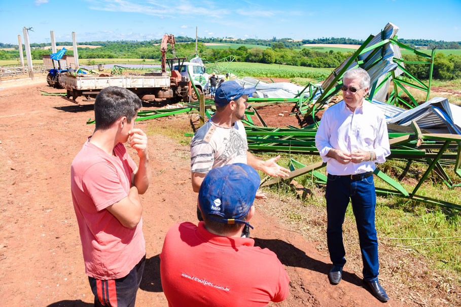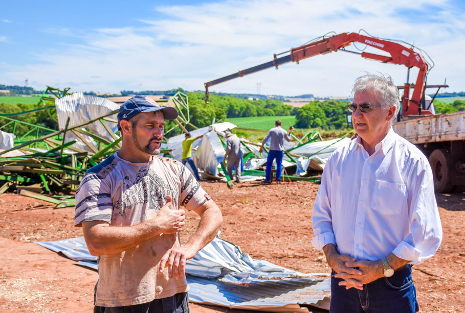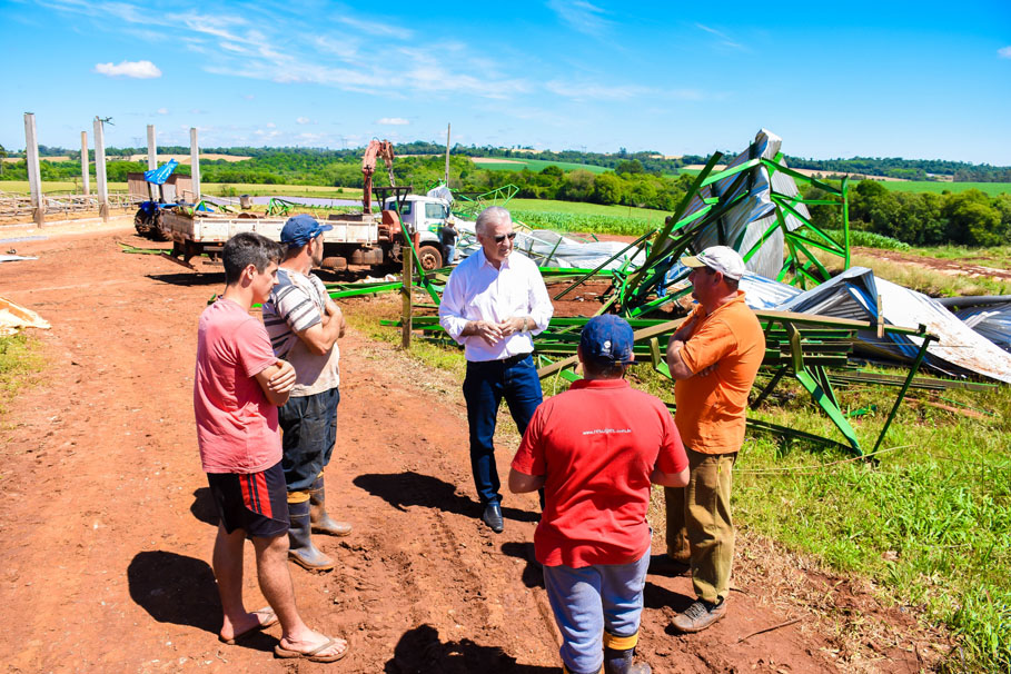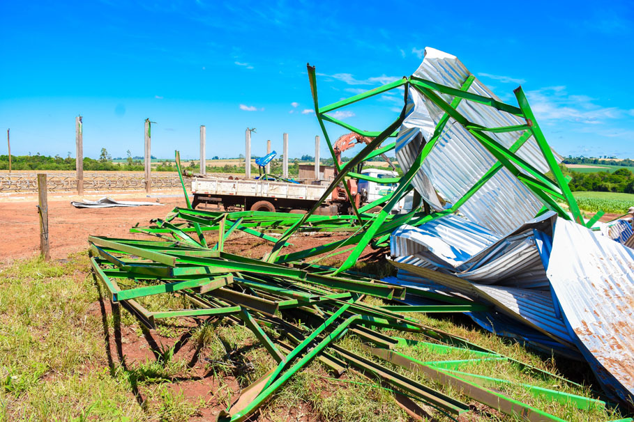 Outro local duramente castigado pela força do vento foi a propriedade do produtor rural Rudinei Copetti e Elair Copetti, localizado na comunidade Olhos D' Agua. Eloir contou que teve seu galpão totalmente destruído. Para o Presidente da Câmara, Adolar Queiroz, ele contou que teve um prejuízo de aproximadamente R$ 300 mil.