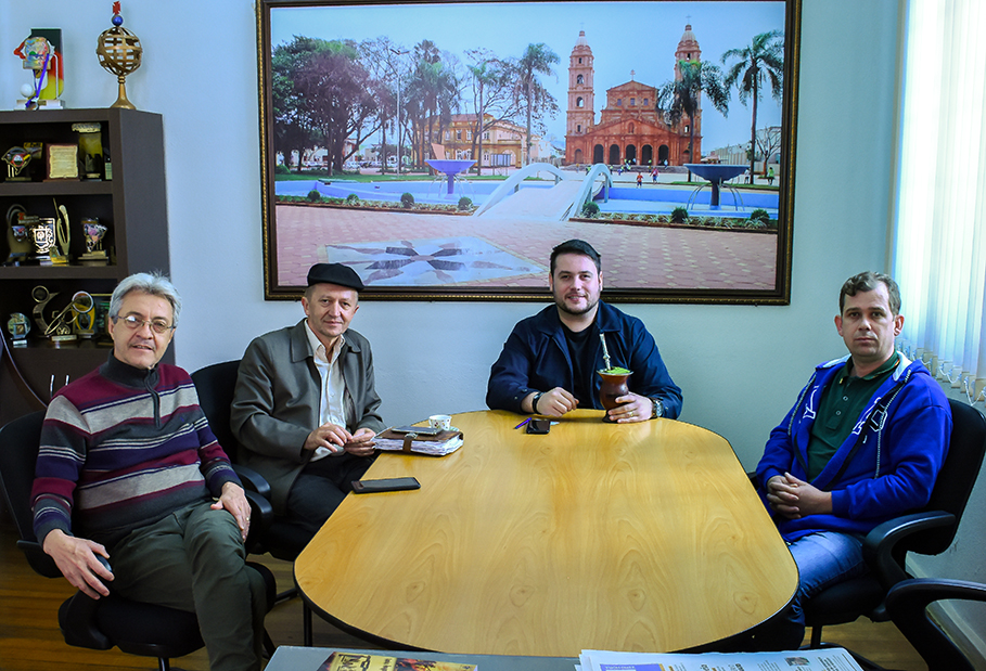 O presidente da Câmara de vereadores, Maurício Loureiro, recebeu em seu gabinete o presidente do Conselho Municipal de Desenvolvimento (Comude), Diomar Formenton, o presidente da Aprohcosa, Reinaldo Emanuel Machado, e o historiador e pesquisador José Roberto de Oliveira.