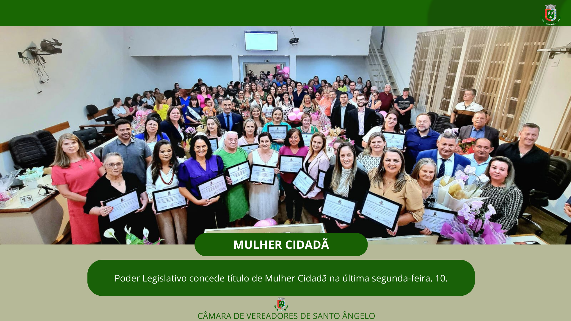 Na noite desta segunda-feira, 10, dezenas de pessoas lotaram o plenário da Câmara de Vereadores durante a Sessão Especial, onde 15 mulheres foram indicadas pelos vereadores para serem agraciadas com o Título Mulher Inspiradora. As entregas das placas comemorativas fizeram parte da homenagem ao Dia Internacional da Mulher, comemorado no último dia 8 de março. Cada vereador pode indicar uma personalidade feminina para receber o título que foi entregue durante a sessão.
