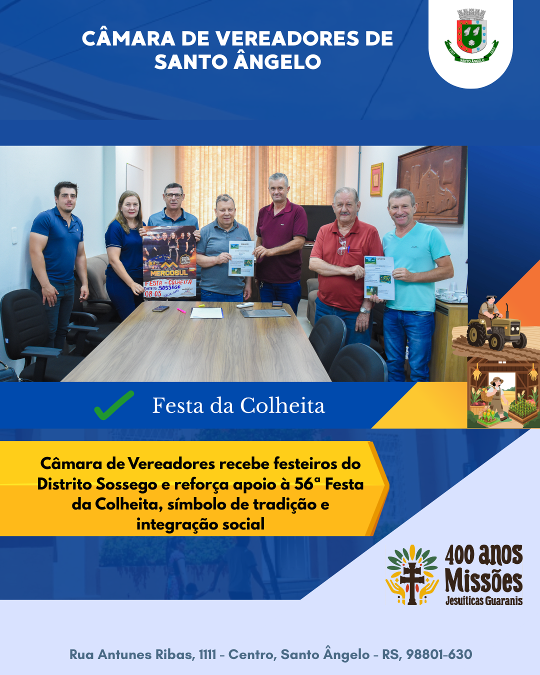 A Câmara de Vereadores de Santo Ângelo reforça seu compromisso em apoiar e divulgar iniciativas que valorizam a cultura, a tradição e a participação comunitária, reconhecendo a importância de eventos como este para a preservação da identidade e para o desenvolvimento social da cidade e da região.