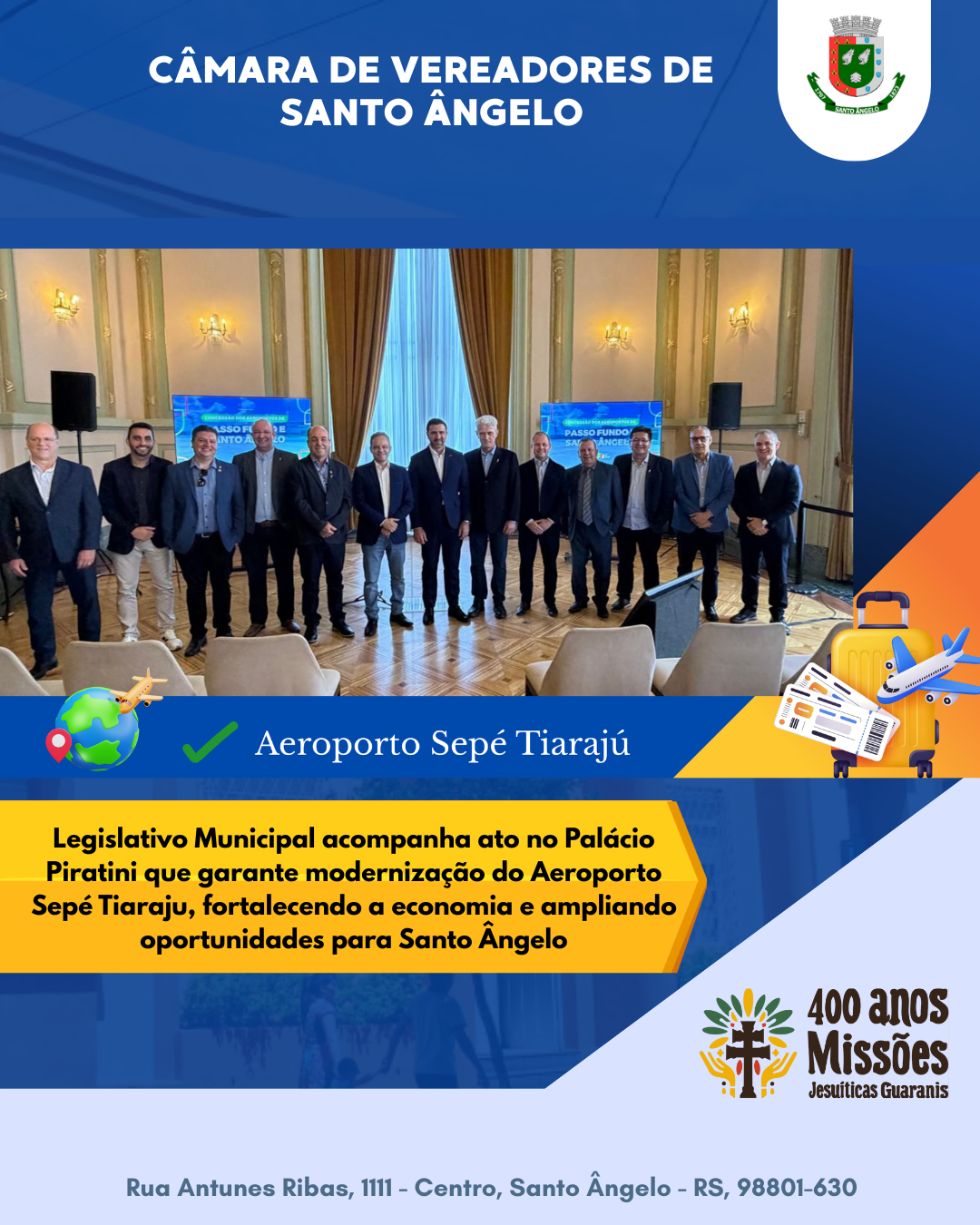 “Com a proximidade das comemorações dos 400 anos das Missões Jesuíticas, este ato ganha ainda mais relevância. O aeroporto é uma porta de entrada para o turismo, para a circulação de bens e serviços e para o fortalecimento das vocações locais. É uma satisfação estar aqui em nome de todos os colegas vereadores, representando Santo Ângelo neste momento histórico.”