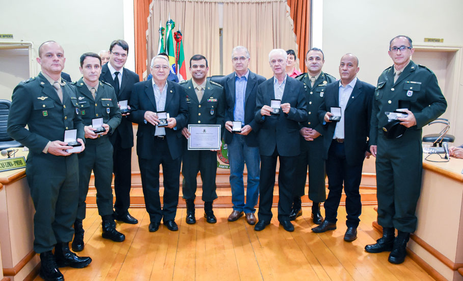 Na ocasião, a trajetória do 1ºBCom rumo à Região das Missões foi lembrada tanto pelo vereador Rodrigo Trevisan, proponente da homenagem, como pelo Comandante do Batalhão, Coronel André Luiz dos Santos Franco.