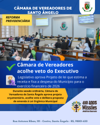 21 de fevereiro de 2026 Câmara de Santo Ângelo discutirá reestruturação previdenciária em sessão extraordinária dia 25