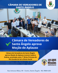 15 de dezembro de 2025 Câmara de Vereadores de Santo Ângelo reconhece Isadora Andres com Moção de Aplauso por conquistas estaduais
