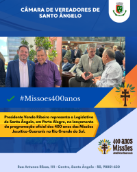 Presidente Vando Ribeiro representa o Legislativo santo-angelense em Porto Alegre no lançamento dos 400 anos das Missões Jesuítico-Guaranis -