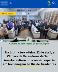 24 de abril de 2025 Câmara de Vereadores de Santo Ângelo realiza Sessão na terça-feira devido ao feriado de Tiradentes