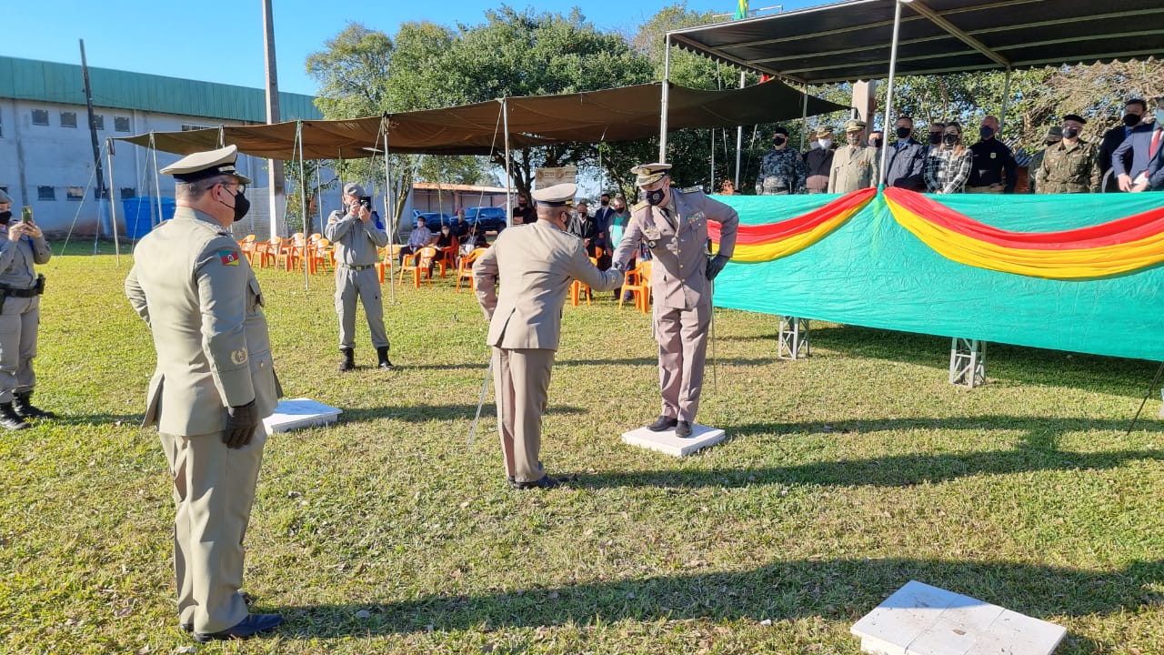 Na oportunidade, o Coronel RR Vladimir Fernando Dalla Costa Ribas passou a função para o Tenente Coronel Sérgio Gonçalves dos Santos, que comandará os trabalhos realizados na área de abrangência de 32 municípios.