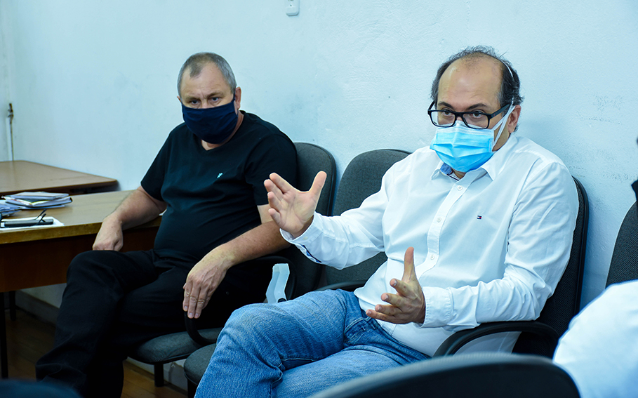 No início da tarde da última segunda-feira, 18, o presidente da Comissão Especial Pró-Vacina contra Covid -19 em Santo Ângelo, Gilberto Corazza (PT), secretário Felippe Terra Grass (PDT) e os vereadores Vando Ribeiro (MDB) (suplente da comissão) e Rodrigo Flores (PDT), receberam o Coordenador Regional de Saúde, Yuri Sommer Zabolotsky, o presidente do Conselho Municipal de Saúde Felipe Luz, o secretário municipal de Saúde, Flávio Christensen, e a coordenadora municipal de Saúde, Andréia Bernardi.