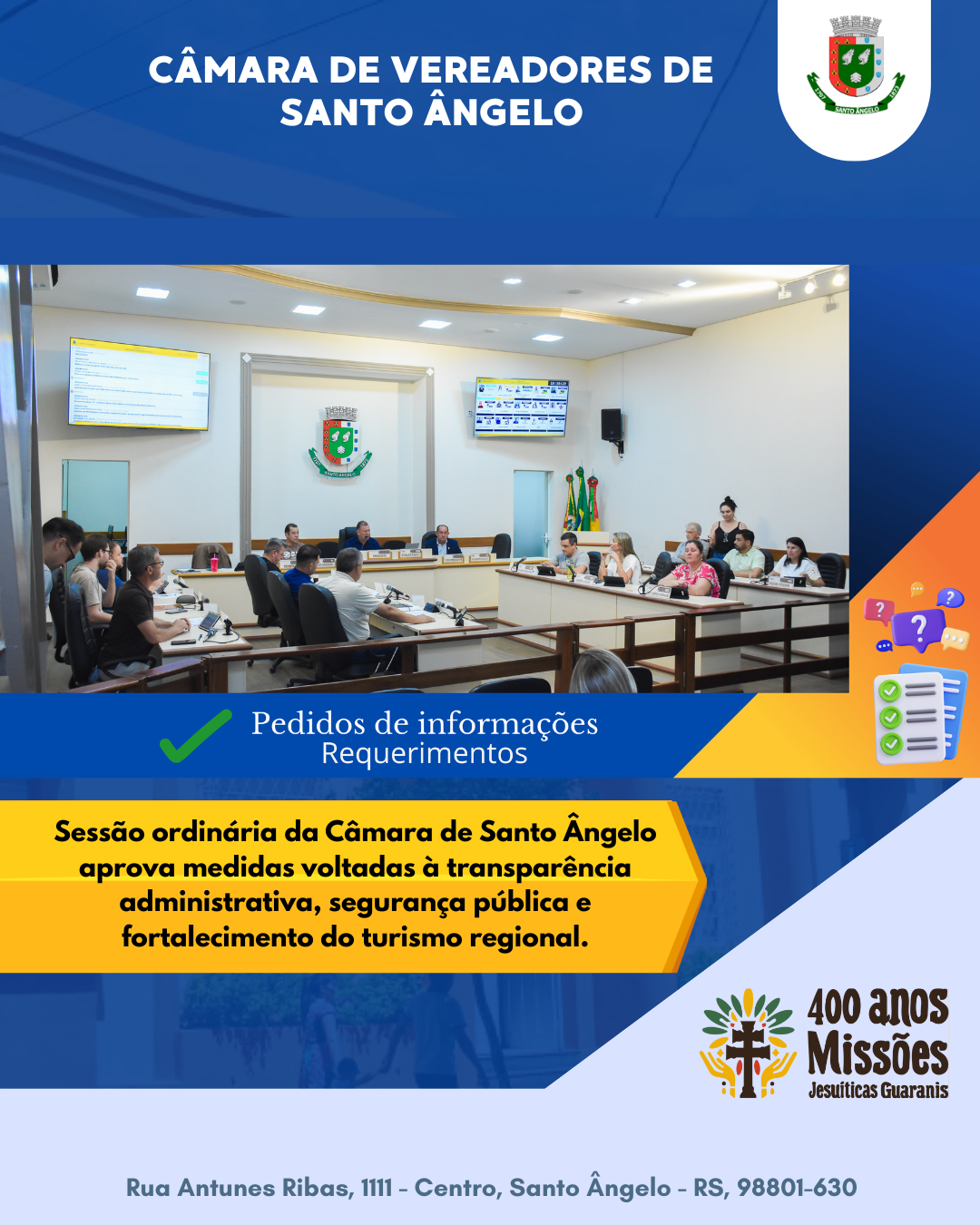 As deliberações aprovadas nesta sessão reforçam o papel da Câmara de Vereadores como espaço de diálogo e construção coletiva, sempre em busca de soluções que promovam transparência, segurança, mobilidade e desenvolvimento econômico para Santo Ângelo.