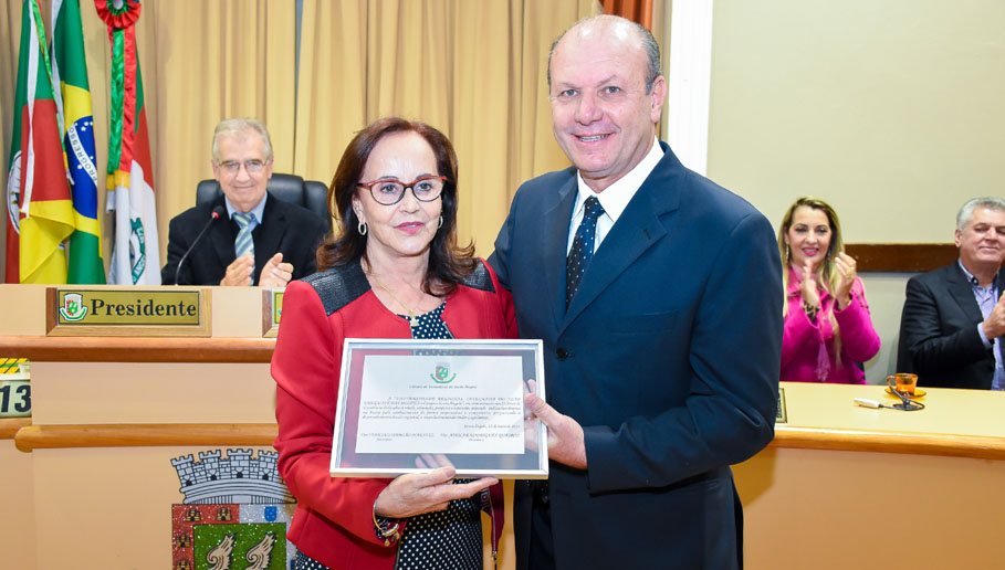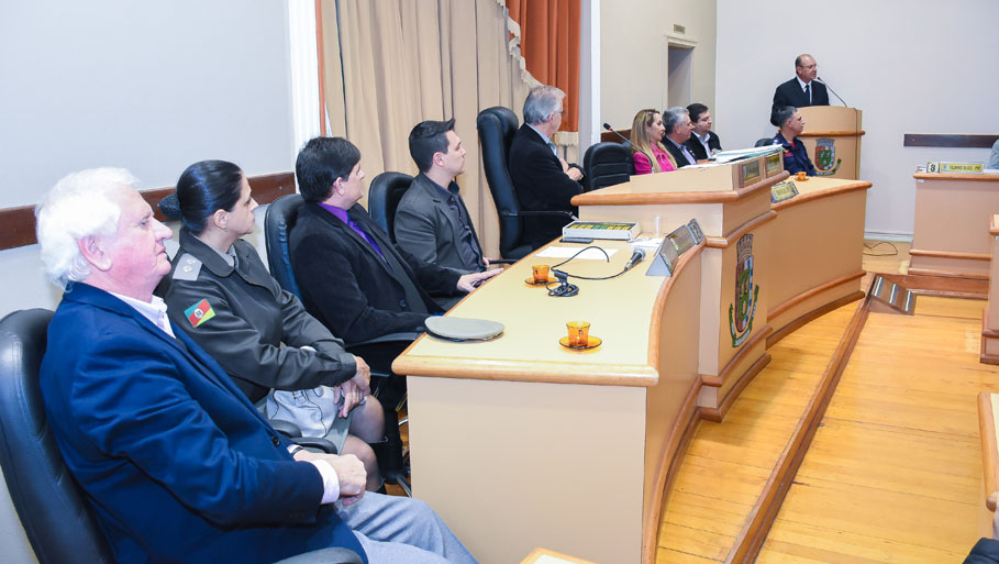 Durante a sessão, foram convidados a compor a mesa de honra, juntamente com o Presidente da Casa Legislativa, Adolar Queiroz e com o secretário da Mesa Diretora, Vinícius Makvitz, o Secretário de Educação, Valdemir Roepke, que no ato esteve representando o Executivo Municipal, o Diretor-geral da URI, Gilberto Pacheco, a Coordenadora Regional de Educação, Tânia Santiago, a Tenente Berenice Zemper – representante do 7º RPMon, João Olavo Daltrozo, Presidente da Subseção Local da OAB, Luiz Carlos Dallepiane, Vice-Presidente do Sindilojas, Douglas Winter, Presidente da ACISA e o aluno oficial Fabiano Maciel, representando o 11º Batalhão de Bombeiro Militar.